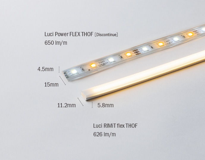 Providing similar brightness of the discontinued Luci Power FLEX THOF, RIMiT flex THOF is only 5.8mm thick and can be bent up to a radius of 75mm, providing a beautiful dotless surface illumination.