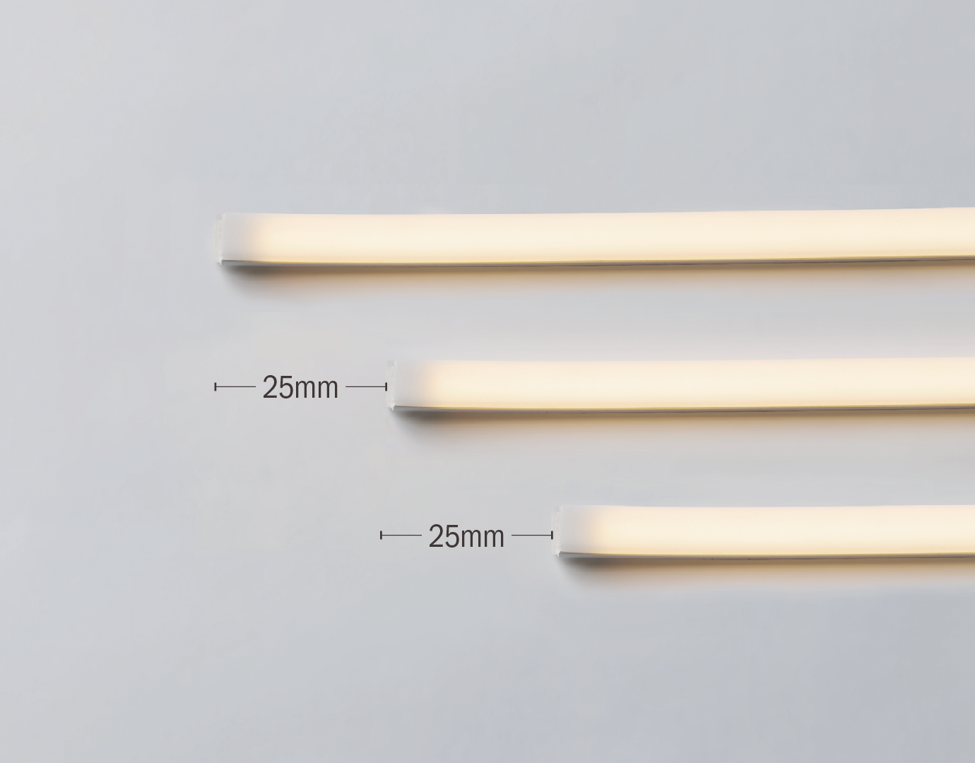 Typical color-adjustable type lights are usually cuttable in increments of 60mm or more. However, this product can be cut in increments of just 25mm, providing greater flexibility for more precise on-site adjustments.