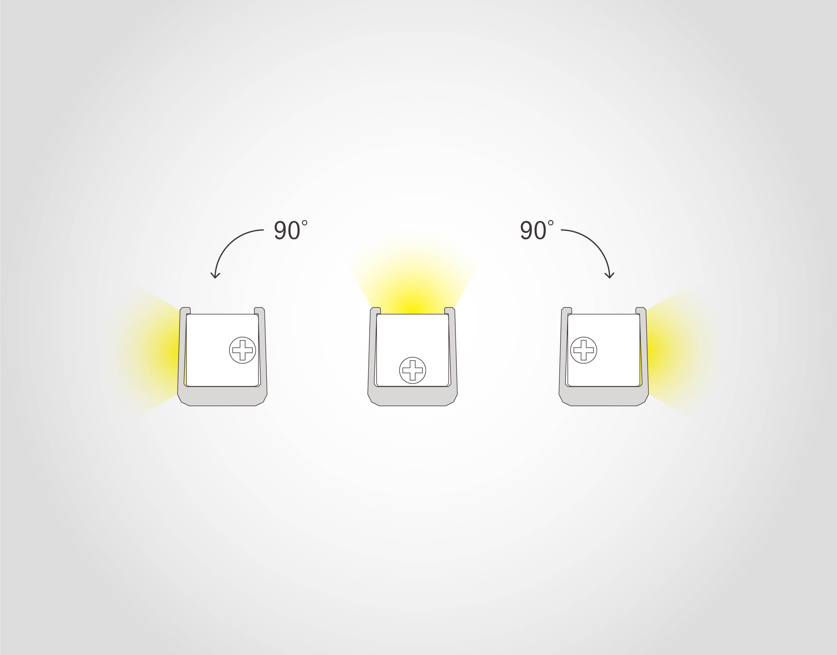 Light fitting can be rotated after installing with mounting clips to adjust the light distribution