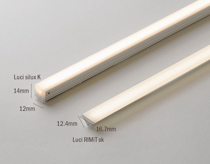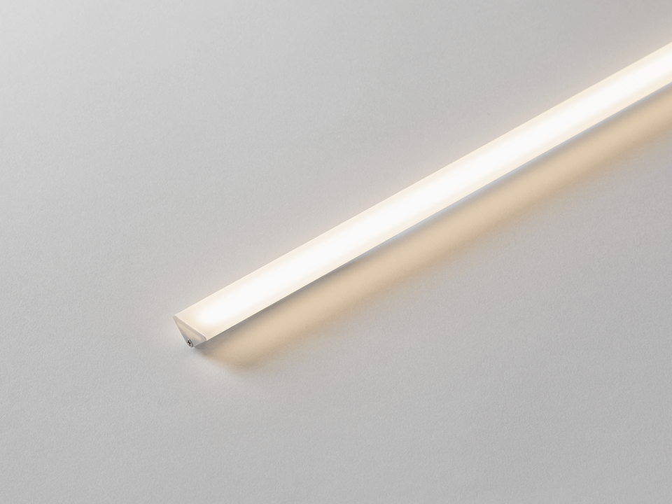 RIMiT sk is a triangular-shaped fixture with a 16.7 mm light-emitting surface on its hypotenuse side, ideas for corner installation to achieve a 45-degree light distribution.