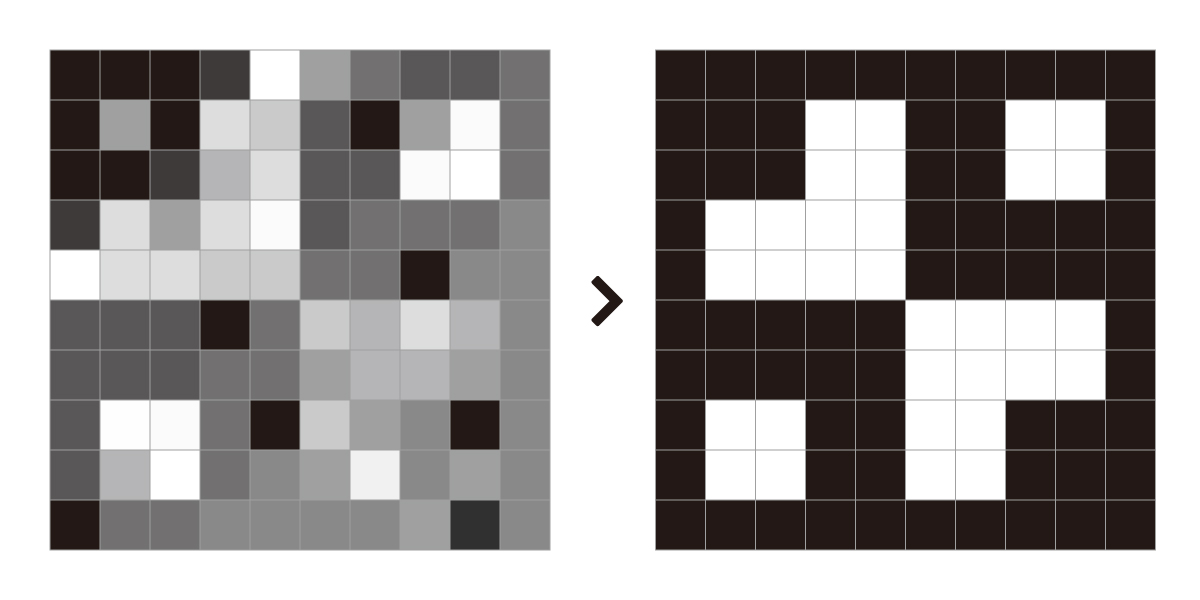 画像の二値化処理とは、画像を白と黒の2色のみに変換する画像処理のことです。