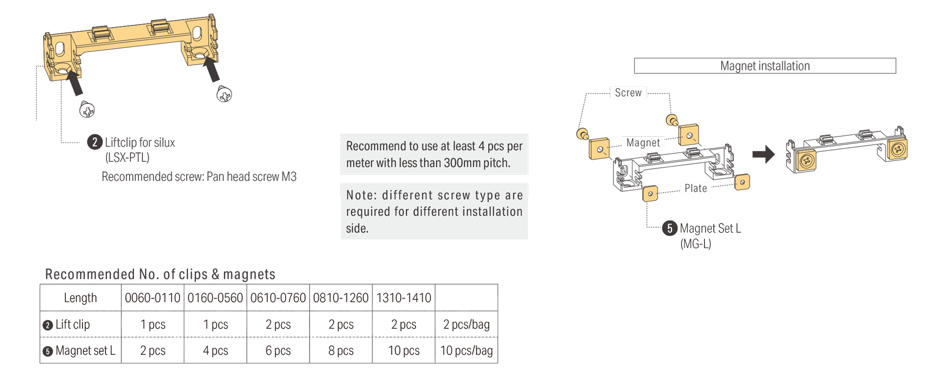 Horizontal installation direction / Clip + Magnet