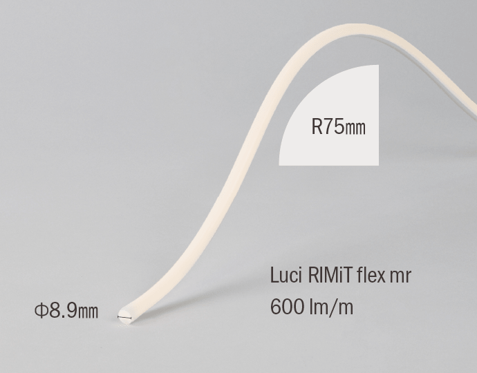Luci RIMiT flex mrは、器具断面直径8.9mmで実現した、曲がる丸形ドットレスライン照明です。