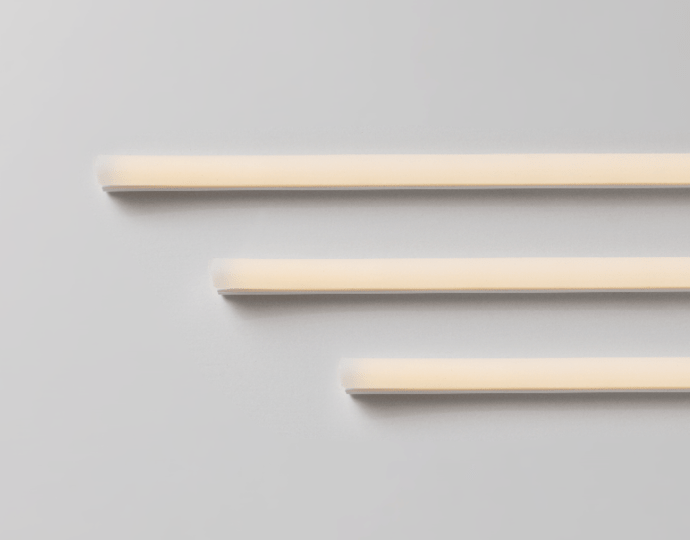 均一で美しい超広配光。現場でカット可能(屋内仕様のみ)。屋内仕様/防滴仕様で特注可能で、自由度の高い曲線デザインを実現します。