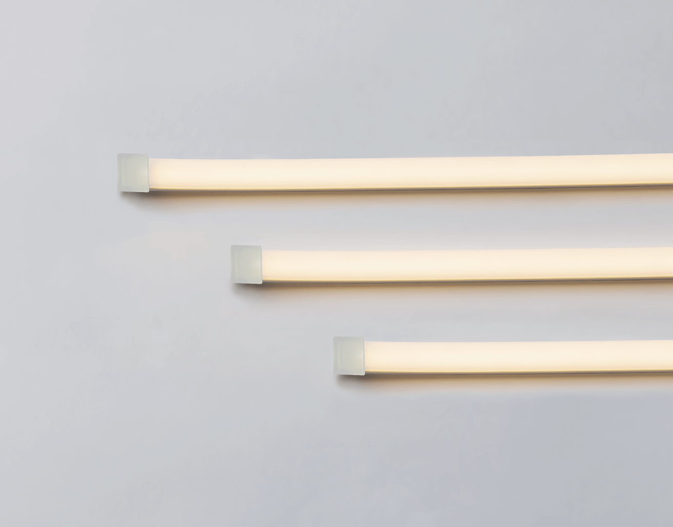 Luci RIMiT flex SOTOは、屋外(軒下)環境で使用可能。わずか5.8mmの薄さで、しなやかに曲がる、ドットレスの美しい面発光を実現。両端合計5mまでケーブルの延長カスタムも可能。テープライトの垂れ防止カバーをご用意し、設置の美しさにも配慮。25㎜から4000㎜までの160サイズ展開で屋外仕様としては短納期も魅力。