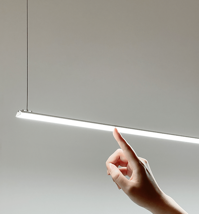 Luci RIMiT Pendantは、極小ラインペンダントで空間にシャープなアクセントを加えます。37種の特注サイズ展開で組立不要。取付金具を選べます。