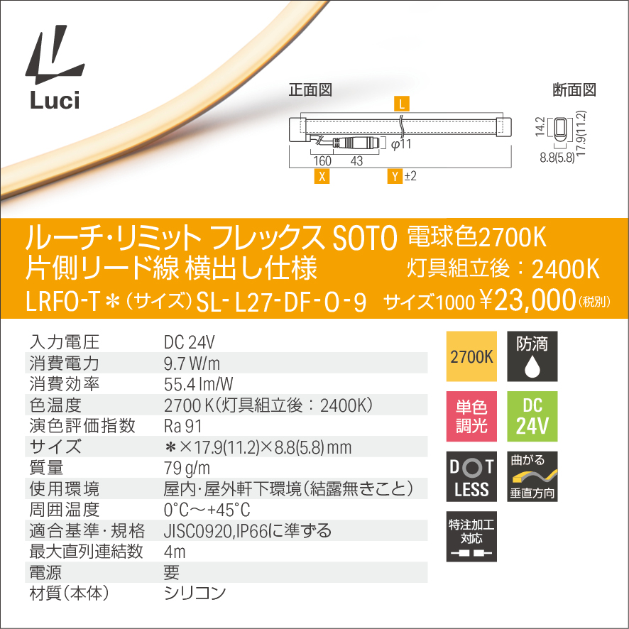 直線状/ビス留め/アルミレール/横出しリード線/カバーあり(下・縦向き時推奨)