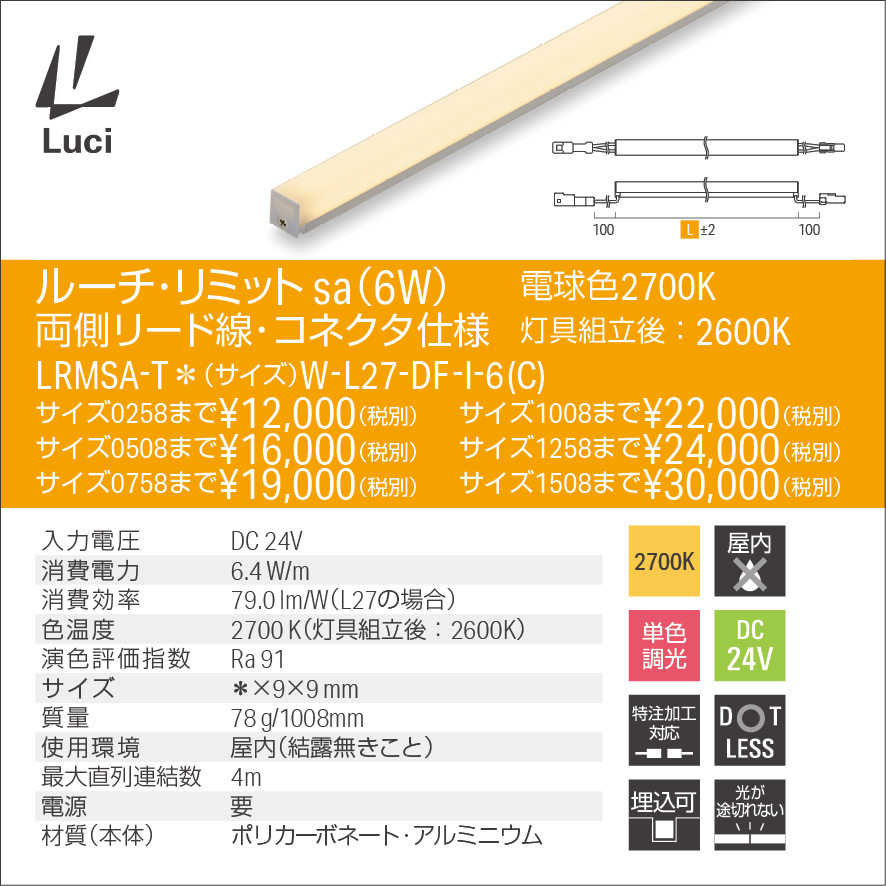 製品スペックサイズ1000消費電力6 : 6.4 W/mのとき