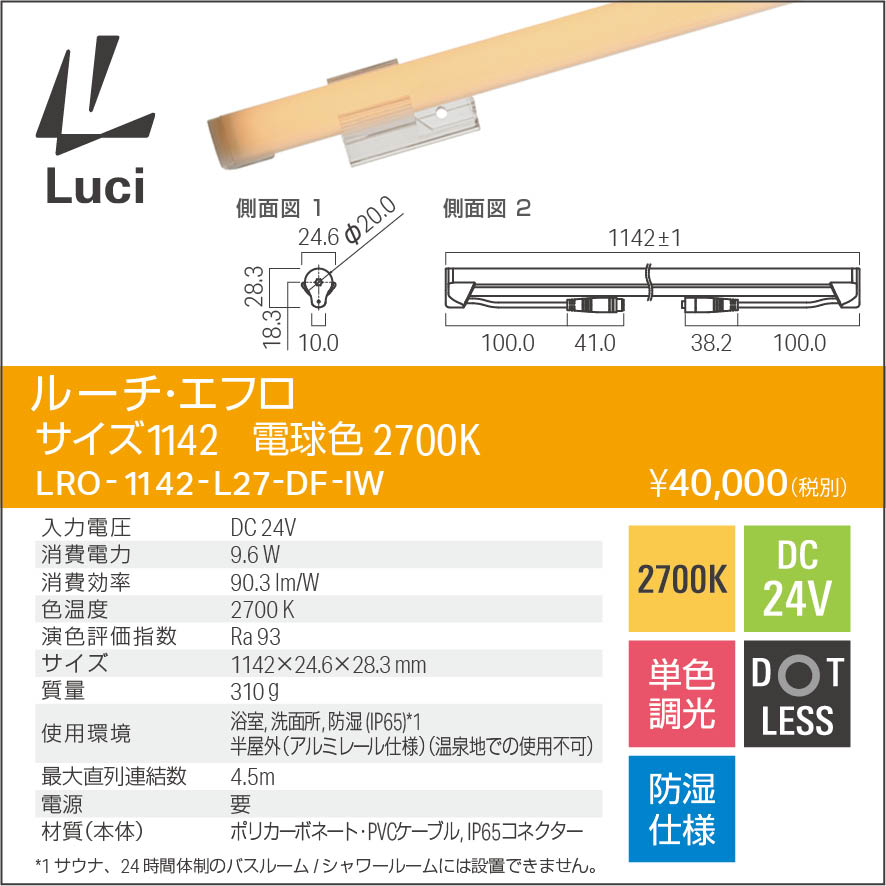 使用環境浴室, 洗面所, 防湿 (IP65)*1
